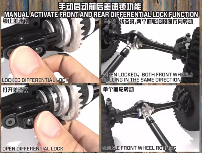 The YIKONG YK41011 is equipped with manually operated front and rear differential locks. While manual locks require more driver input compared to electronic systems, they offer superior reliability and are easier to maintain, making them ideal for hardcore off-road challenges.